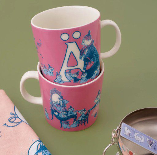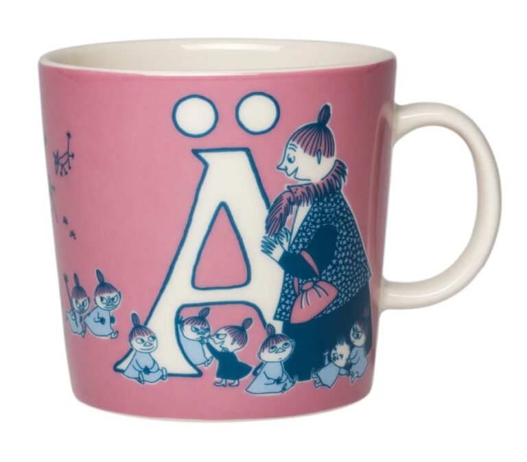 「Aにドット」などと呼ばれるこの文字(ウムラウト)は、北欧や中央アジアでよく使われるアルファベットのひとつです。フィンランド語で母親を意味する”Äiti”にもこのアルファベットが使われており、このマグのイラストにミムラ婦人が選ばれたのも納得です。